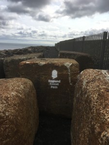 For various reasons my last few days of coastal walking have been reasonably short, I’m blaming Gemma and Alfie for most of that. Today should be around 16 miles which is a more reasonable length for a days walking. I’m looking forward to today’s walk because despite living only twenty minutes drive away I’ve not walked this part of the coastline before. I normally stopped when I got to the end of the Northumberland Coastal path at Cresswell. The ECP signpost indicates the route takes a newly laid black cinder path through the dunes at the rear of the power station. There’s even more fly tipped rubbish lying in the dunes. After passing the monstrous power station the scenery improved across Newbiggin golf course.