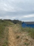 I stood around near the foot of the famous Hunstanton cliffs for a few minutes admiring the contrast between the vivid red sandstone and the white chalky layers. I saw the first national trails acorn logo, this confirmed we were, as expected now walking along the Norfolk Coastral Path. We spent the next few miles walking along the cliff edge then a little later through a soft red sandstone path. Various coloured beach huts lined up neatly on our left.
