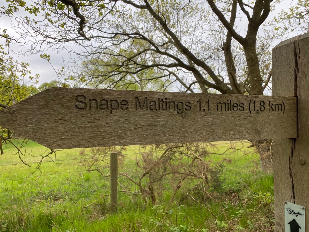 Legend has it that The Sailors Path was trodden down by local sailors. Finding themselves stuck in the Snape Maltings mud at low tide they would simply abandon their craft and instead walk into Aldeburgh. I didn’t have any particular reason to go into Snape so instead I just stuck to the right of way to take me directly to The Maltings. When I arrived on the fringe of Snape I heard, then saw a huge group of around 100 people all excitedly getting ready for their days walk, a local ramblers group I guessed. The next mile and a half towards The Maltings was as pretty as the previous two miles and I eventually arrived at The Snape Malting arts complex. The collection of buildings known as ‘The Maltings’ was previously created for the processing of barley but when that function ended in the 1960’s it became an established concert venue, several shops and more importantly a cafe. It’s very, very popular. I waited patiently in the queue, bought myself a coffee and took an extended refreshment break looking out over the River Alde.