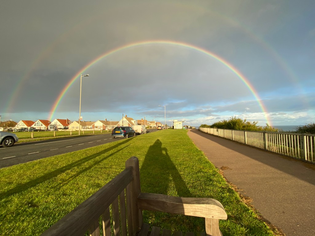 The next five miles towards Clacton-on-Sea continued along the promenade and it’s lined with long stretches with numerous beach huts. On the final stretch into Clacton a stunningly clear double rainbow appeared in the sky ahead of me. It was no surprise when the beauty of this rainbow was soon followed a few minutes later by yet another heavy downpour. For the last mile into Clacton I decided to leave the busy promenade and instead walked along the relatively quiet beach. It was starting to get dark and I was happy that my accommodation for tonight, the Premier Inn was less then a minutes walk from the beach. After getting cleaned up I decided to cross the road and eat at the nearby Wetherspoons named The Moon and Starfish. It was typically Wetherspoons, cheap, basic food with quick service. just what I wanted. I was back in my room for 9pm and feeling tired, sleeping not long after that.