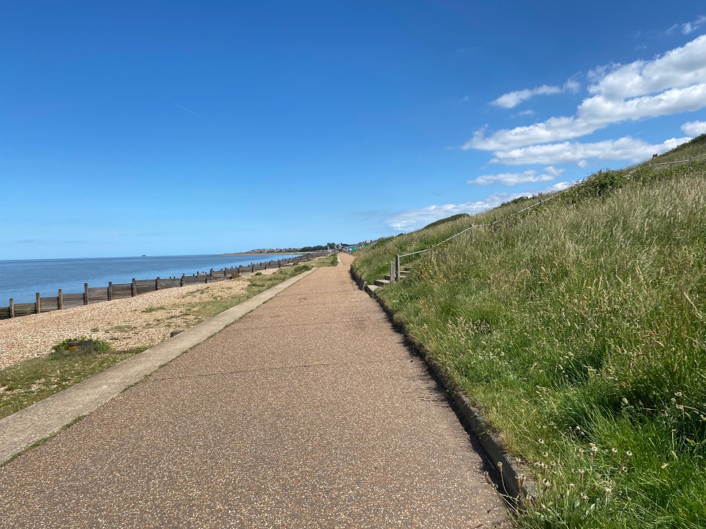 I’d never been to this part of England before and was so impressed by how clean and pretty the coastline was along here. The views changed around every corner and the Northern end of Herne Bay looked beautiful, perched on the side of Studd hill. By the time we reached Herne Bay I suspected Gemma had, had enough of walking. She had gone quiet and was dragging her feet a little. She never complained but I recognised the signs of a tired better half. I kept telling her that it wasn’t too far to go. After rounding Studd Hill we walked the mile towards Herne Bay Pier. Just beyond the pier we turned away from the coast. We did stop briefly at a small shop to grab an ice cream and more cold drinks before heading to Herne Bay train station.