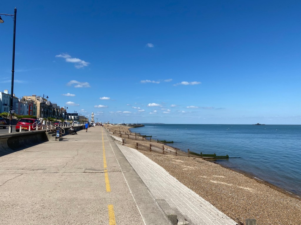 We continued along the path until we reached Westgate Bay. I moved onto the beach with Alfie and only later on did I realise that dogs are banned from all the beaches along this section, oops, my bad. There’s several beachfront bars and restaurants on the route into Margate and after reaching one of these, marked weirdly with a red double decker bus we left the coastline.