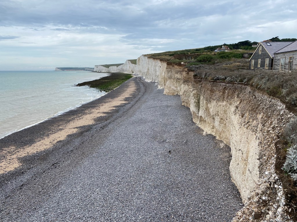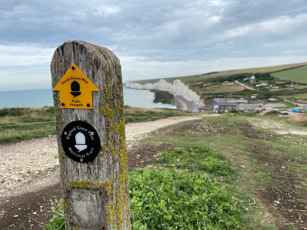 I wanted to start this blog off by saying what an absolutely stunning, stunning day. All the physical pain and mental anxiety that you can experience on a multi day walk is all worth it when you get to experience days like today. After leaving the Burlington Hotel early (6.30am) I’m immediately on the coast and after a mile of promenade walking I’m ascending up the hill at Holywell. After another mile across the short grass there’s suddenly a short but steep ascent up onto Beachy Head. This felt more like Scottish hill walking then English coast walking. I paused briefly at the RAF Bomber Command memorial which is situated close to the 164m trig point. I could only imagine the relief of the World War Two RAF crews when they saw the relative safety of these chalky cliffs after each perilous mission over occupied Europe. At this point the ECP intersects with the South Downs Way. It was a perfect day to be walking across the grassy slopes atop of the cliffs, first passing the Belle Tout Lighthouse towards Birling Gap. I arrived at Birling Gap cafe around 9.15am just fifteen minutes before opening. Once inside, as first customer of the day I quickly ordered myself a well earned coffee and a bacon sandwich. Within twenty minutes of opening the place was packed. Lots of buses full of excited, chattering students wearing their day packs.