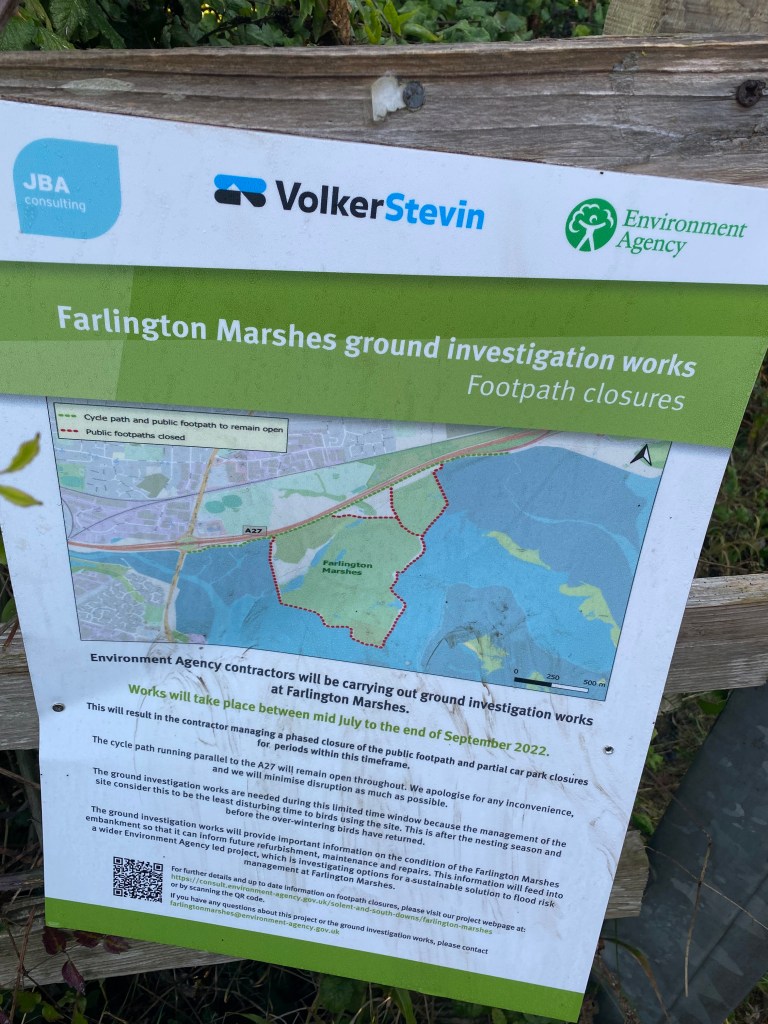 The first few miles is adjacent to the A27 and even this early it’s still busy and very noisy. I had planned to walk the two miles around Farlington Marshes but there’s a large notice informing me that the route is closed due to ground works. I stalled next to the sign considering whether to continue as planned but I could see several large bits of yellow machinery and high fencing not far away and decided it probably wasn’t accessible to pedestrians.