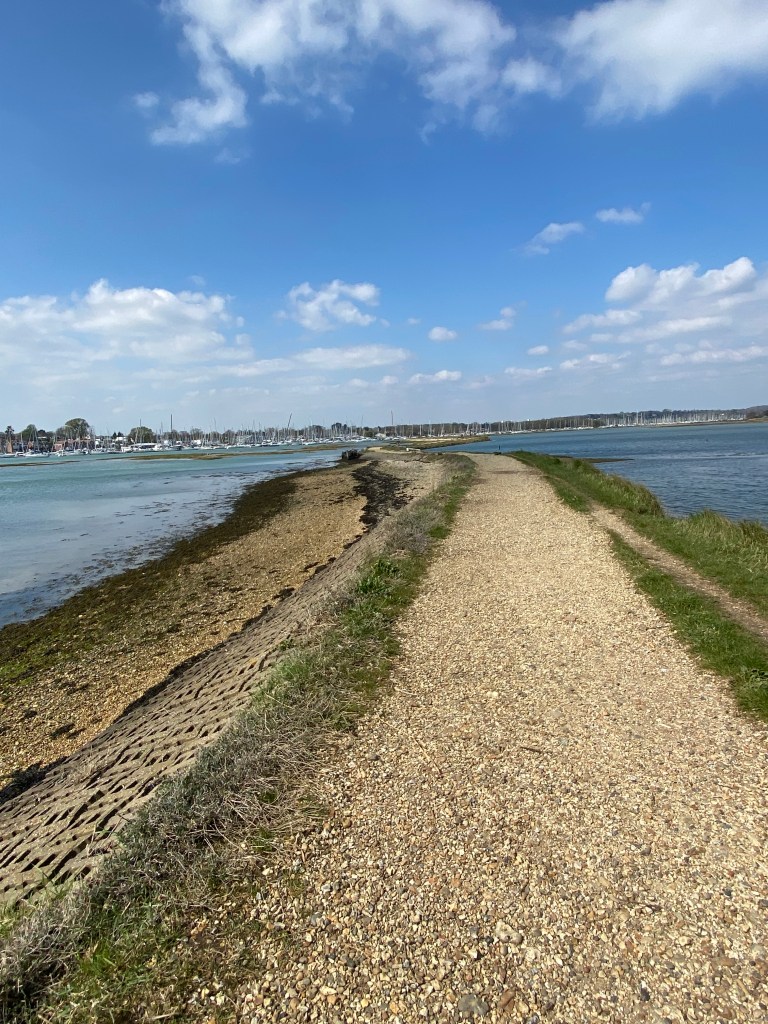 I slept in later than usual this morning and I’m looking forward to another short but great day of walking along the English Coastal Path. I parked in Fareham, about five minutes walk between the train and the bus station. I then boarded the bus back to Stubbington and thirty minutes later I was setting off along the ECP/Solent Way. I walked by Titchfield Haven National Nature Reserve and saw a good variety of wading birds including swans, ducks, oystercatcher and a dozen more varieties that I couldn’t try and identify. The next two miles towards the boundary of Solent Breeze Caravan Park was pleasant enough, along the Solent Way but a short time later I got frustrated trying to work my way around/through the caravan Park. There’s a footpath along the edge of the beach but the tides in so I’m obliged to walk an additional, irritating mile. The ferry that crosses the River Hamble is located near Warsash and this is the official route of the English Coastal Path and Solent Way. After a brief refreshment break I passed the bright pink hut which is the ferry passengers waiting room. I could see the equally brightly painted boat sat on the other side of the river.