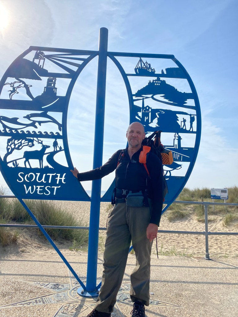 Last night whilst on Middlebere Heath I had noticed lots of shallow holes in the ground and I wondered what had made these strange marks in the ground. A little later I had bumped into a dog walker who mentioned the wild pigs which roamed on the heath. This cleared up the mystery of the holes but it also had me slightly concerned, pigs can be pretty inquisitive. I heard lots of movement during the night but thankfully my tent was still intact when I woke. I encountered several working oil wells over the next few miles which was interesting as I’d never seen these anywhere previously in the UK. After walking up Ferry Road I then used the public toilets to fill up my water bottles. I’d run out of water last night and was desperate for my morning caffeine fix. As I was sat down I was passed by a large group of around twenty teenagers who had just disembarked from the chain ferry. They were carrying huge backpacks as they walked by and I deeply sympathised with their plight having carried similar packs in my younger and much, much fitter days. After coffee and porridge I walked the short distance towards the Sandbanks Ferry and the start of the South West Coast Path. It was turning into a beautiful weather day and there wasn’t a single cloud in the sky. After posing for photos at the SWCP monument I spread out my damp camping gear on the stunning sandy beach, I removed my shoes and socks and chilled for a couple of hours, watching the chain ferry moving back and forth across the water every fifteen minutes.