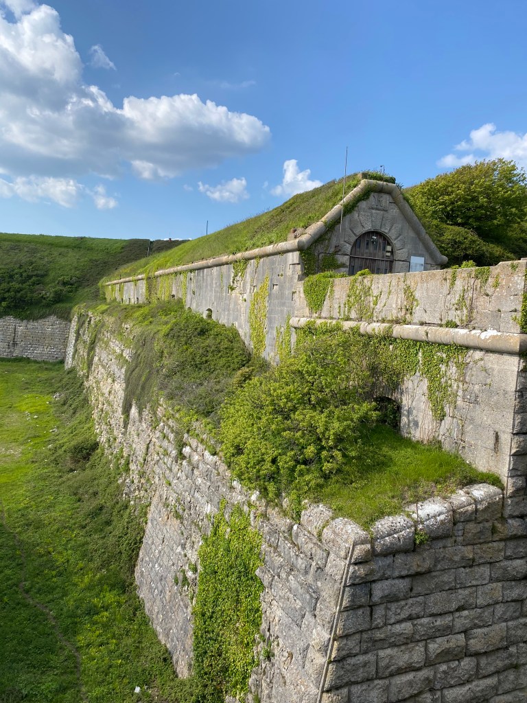 The path along the rough stones of Chisel beach was hard going on the soles of my feet so I switched to the pavement for the flat mile to Portland Castle. It’s then a steep but short climb up through Fortunewell to arrive at the doors of HMP Portland. The views looking out across East Weare and the English Channel are pretty decent. I was following the route of the old Portland Coast Path which ended abruptly, without any warning on the edge of somebody’s front garden. I’m now forced to back track for about four hundred metres before descending down to the bottom of Grove Cliffs. Going down the narrow path I moved aside for several exhausted cyclists struggling to carry their bikes up the cliffs edge. I then walked along the bottom of the Grove Cliffs for around a mile. The area is clearly popular with climbers and I spotted literally hundreds of them sticking like spiders to the side of the cliffs.