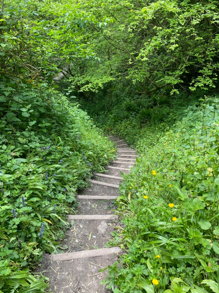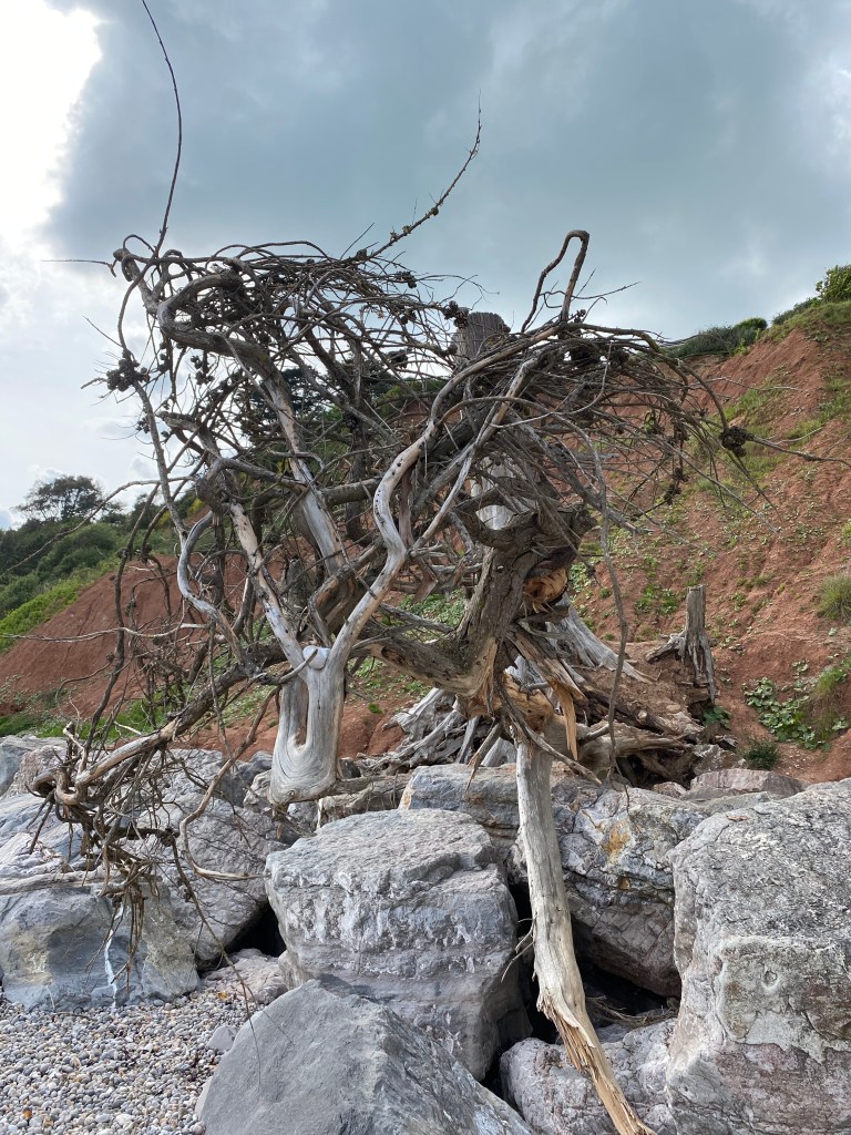 Soon after leaving the busy Lyme Regis streets behind there’s a steep step ascent up onto Ware Cliffs. I then entered a narrow wooded area and followed a nice path through the trees. The three and a half miles through Ware Cliffs, Pinhay Cliffs and then Bindon Cliffs was really pleasant. The cool shadows under the trees was a relief from the hot sun that I’d experienced over the last few days.
