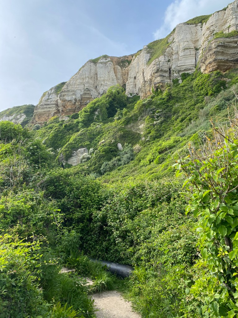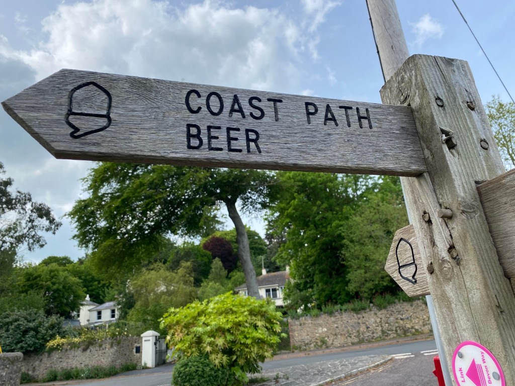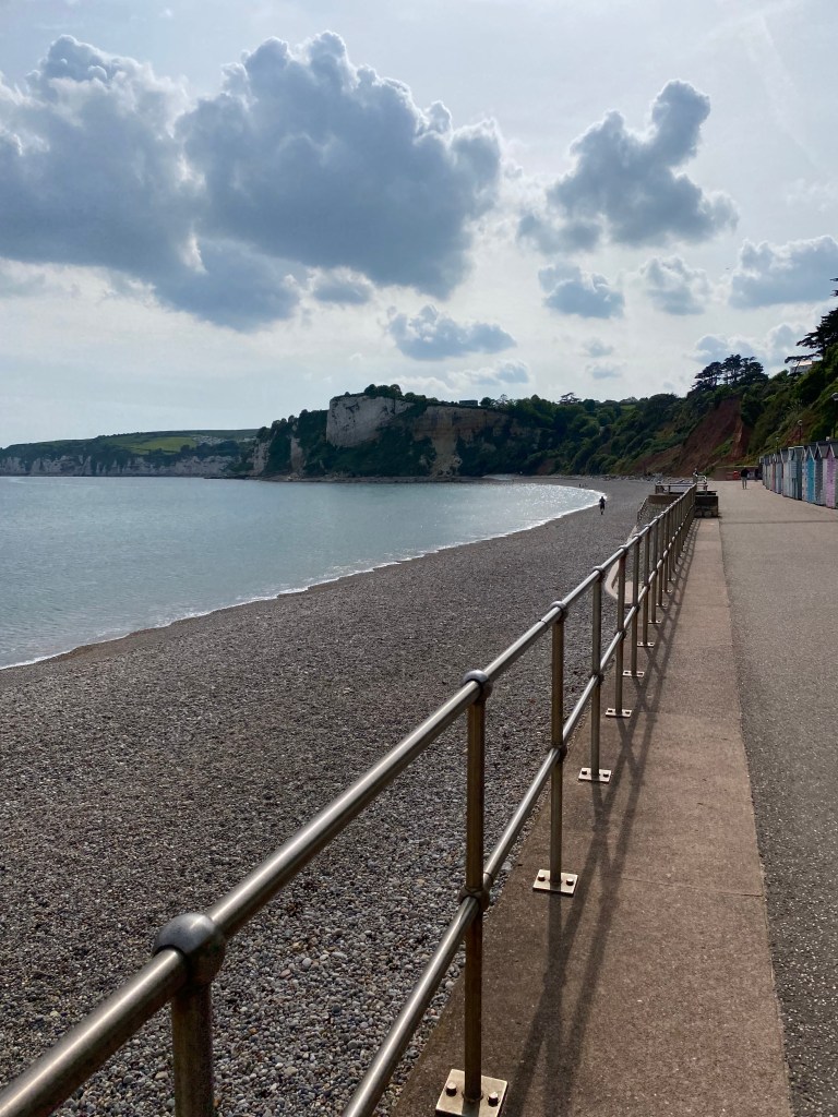 I’d bumped into dozens of people over the last couple of hours and had also taken several short breaks on the wooden seats that are placed randomly along the route. At Culverhole Point I eventually emerged from the green tunnel and descended down and slightly inland towards Axmouth. Here the SWCP meets up with the Monmouth Rebellion Walk. There’s the usual hoards of people and line of beach huts on the seafront at Seaton Beach. At the end of Seaton Beach I fancied another (more) extended break but wasn’t sure where to stop. There’s a pub and a cafe at the end of the beach and I stood there staring at them both for what seemed an eternity, not being sure where I fancied resting my feet. In the end I opted for a pint of Guinness at the pub, followed up by a takeaway coffee from the cafe. I checked the map before moving off towards Beer (it’s a small town and not another pint, honest). I wasn’t sure where to wild camp tonight and I couldn’t see anything immediately suitable. The walking from Beer to Beer Head was easy enough and I just skirted along the fence line for the next two miles.