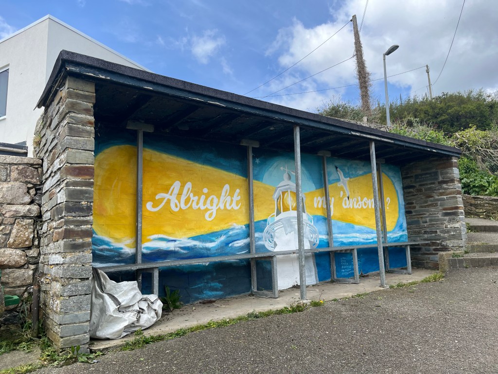 The gorse maze continues beyond Black Head but by now I had just decided to take whichever path was closest to the edge of the cliff and this seemed to work out quite well. A mile further along the South West coastal path I reach the village of Pentewan. The route goes slightly inland along the road to avoid the Winnick Caravan Park. It’s only a short time before I’m back onto the cliff top. I stopped again for a break at a conveniently placed seat near Portgiskey and this time I was joined for my lunch by an overly friendly Robin. It wasn’t shy and it seemed more than happy to hop onto the seat and mop up any crumbs from my Ginsters Cornish pastie. Even the noise from my boiling stove didn’t frighten it away.