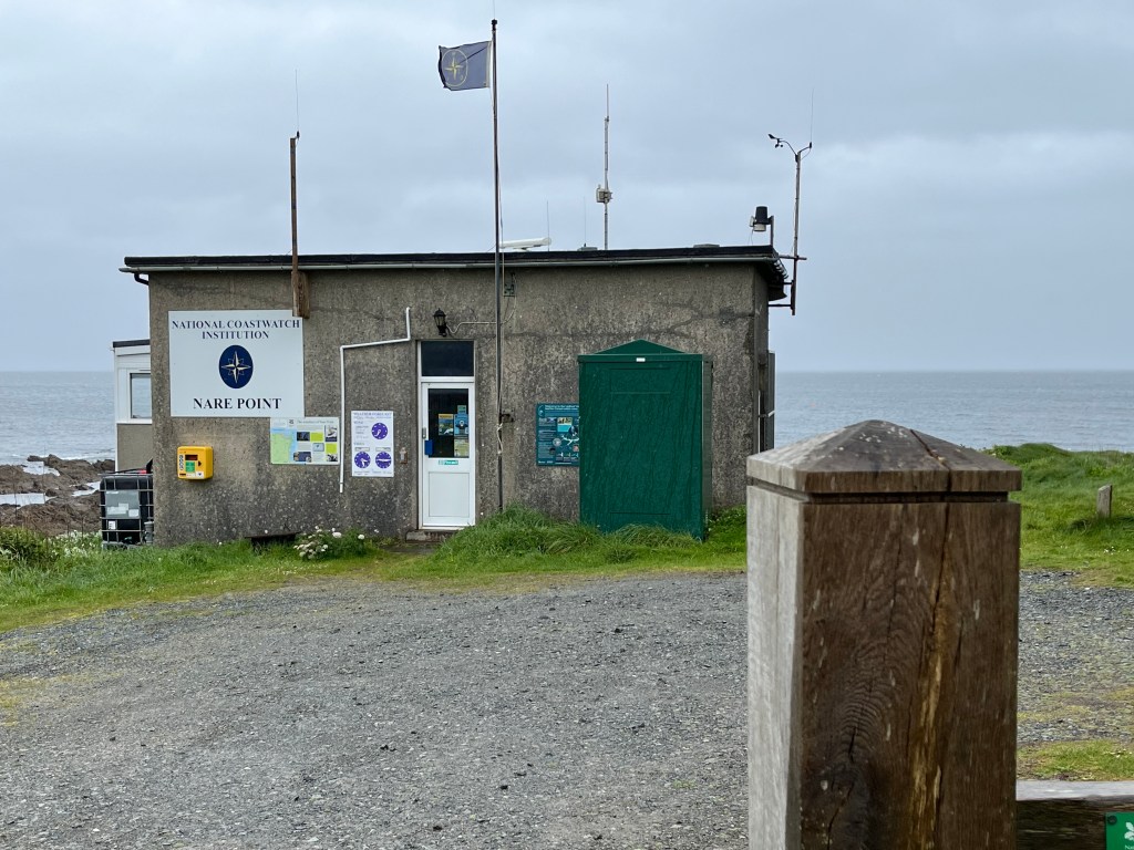 I hadn’t had any opportunity to escape from the rain over the last four hours so was pleased to find a spot amongst the dense trees which was relatively dry and free from the rain. I had a short break and managed to boil some water and drink some hot coffee. A few minutes after restarting I bumped into a couple who were walking the SWCP. They asked about the Ferry crossing to Helford but I really couldn’t be bothered to explain why I hadn’t used the ferry. I just advised that the dock was only a few minutes away. During the next three miles I passed several small hamlets along the coast praying I would find a shelter to temporarily shield me from the rain. I did eventually find an open public toilet at Gillan. Not ideal but like the saying goes, beggars can’t be choosers. Shortly after leaving the toilet block I walked slightly inland and found myself having to cross Gillan Creek (it looked deep and scary) I got some vague advice about safe crossing locations from a nearby fisherman and then just went for it. I didn’t bother removing my shoes, cos they were already soaked. A little later at Nare Point lookout station I caught sight of today’s final destination, the Diving Centre at Porthkerris Cove.
