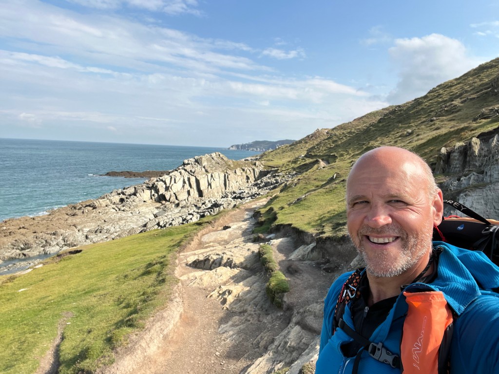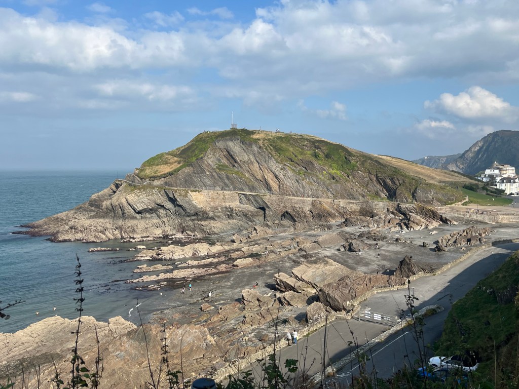 I was making really good time so at the end of the beach I climbed up onto the edge of town and took an extended break on a nice wooden bench. Leaving town I went into full sheep mode and took a wrong turn by following a group of several people assuming they were following the coastal path. I realised my mistake and got back onto the path which follows a minor road up a steep hill, before turning left up a set of wooden steps behind a hotel. There’s a decent path across the cliffs with the Bull Point Lighthouse in the distance. The blues skies began to disappeared above the dark grey clouds and an hour later it began to rain, not heavily but enough for me to throw on my waterproofs. There’s a few steep hills to negotiate before I reached the outskirts of Ilfracombe.
