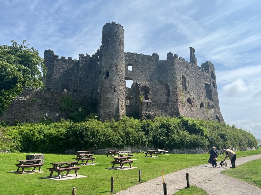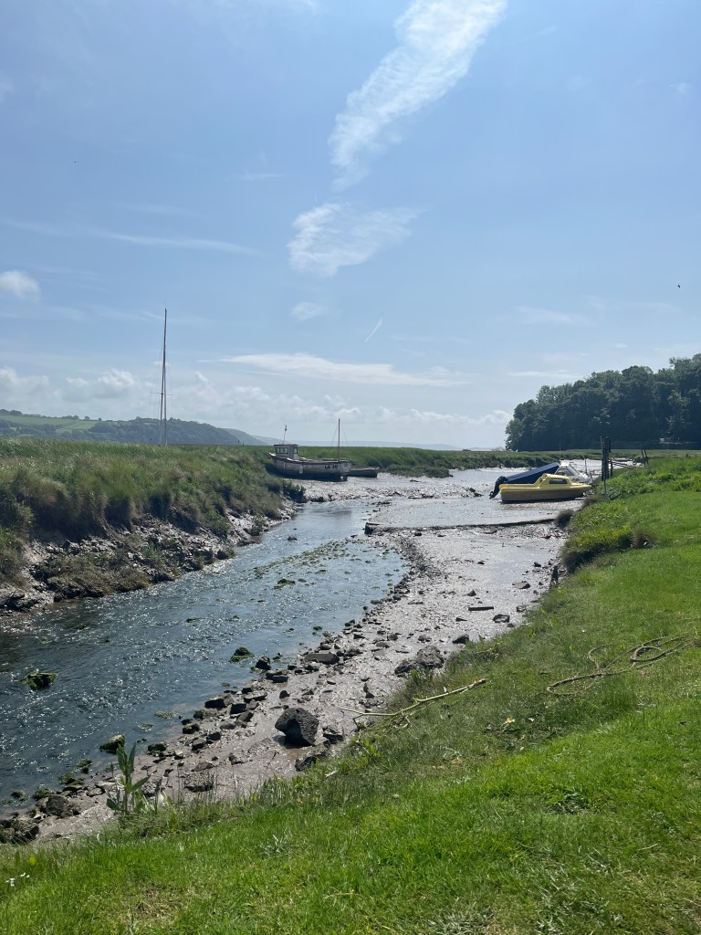 With anything now dry I was off again. The weather had vastly improved and as I boarded the bus back to St Clears the sky was cloudless. I had been tempted to drop into the pizza shop where my stolen card had been used but decided that it wouldn’t be appropriate. Before leaving St Clears I picked up some snacks and then made my way in a Southerly direction along the side of the A4066. The path was dangerously slippy in places from the previous days rain so I decided to walk along the side the road instead. After about two miles the official Wales Coastal Path leaves the side of the A4066 and is then supposed to head off to the left towards the River Taf. I saw a small gap in the high hedgerow where the path was meant to be but the vegetation through the hedgerow and the copse of trees beyond was so dense and clearly rarely used that there was no way I was going to get through. I carried on along the road for a further mile and then just before Hill Farm I turned off and rejoined the coastal path fifteen minutes later. On arrival at the edge of the estuary I was able to catch a good glimpse of the views that I had missed out on yesterday. I passed close to the Dylan Thomas boathouse where the renowned poet lived with his family until his death in 1953. There’s a reasonably steep climb down towards Laugherne Castle. I was astonished about how pretty the location was so I decided to sit on a bench looking over towards the castle and have a long break and a late breakfast.