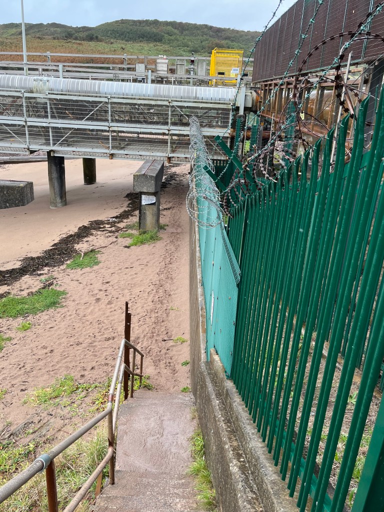 I’ve only got three more miles to walk. It was still fairly early so I rested for around two hours and attempted to dry out before moving off again. Prior to leaving I sincerely apologised to the staff for the substantial pool of water that I’d deposited on the restaurant floor. Thankfully the rain had eased off a little by the time I left McDonald’s and the cloud had risen so I got to see the route ahead. There’s another huge oil refinery to skirt around near Gelliswick before reaching another Milford Haven fort. This one’s located at South Hook Point and has some decent views out towards Stack Rock.