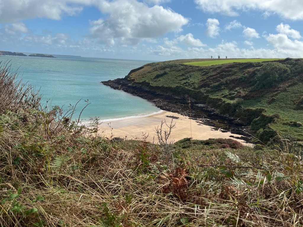 I had a quick conversation with a family of German cyclists who were resting at the lighthouse. As I continued along the path I spotted several larger Islands including Skomer Island in the distance. The following four miles towards Marloes Sands were uneventful and went by quickly. I wasn’t able to find a way onto the beach at Marloes Sands so continued across the cliff tops. I arrived at the public car park close to West Hook and took a short break before climbing onto the peninsula and then walked the circular mile and reaching Martins Haven. The view from Woolmark Point towards Skomer Island was amazing and I wishes I’d been in possession of a pair of binoculars.