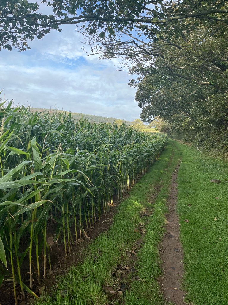 It was so nice to set off this morning in freshly washed and nice smelling clothes. I managed to finish off the last of the bacon, sausage and eggs this morning before leaving Fishguard Holiday Park for the third and the final time. After a thirty minutes bus journey I arrived back in Cardigan to dry but overcast conditions. I immediately set off along the Northern bank of the River Afon Teifi. There’s several farmers fields to be skirted around and the grounds was remarkably dry despite the recent and heavy rainfall. The route passes by several smallish caravan parks and lots of large and expensive looking houses. After walking around four miles I decided to stop at a wooden bench near the Cliff Hotel and made myself a coffee and ate some snacks. There’s a long steady climb along the side of a busy road and then more fields to cross. I could see Cardigan Island off in the distance